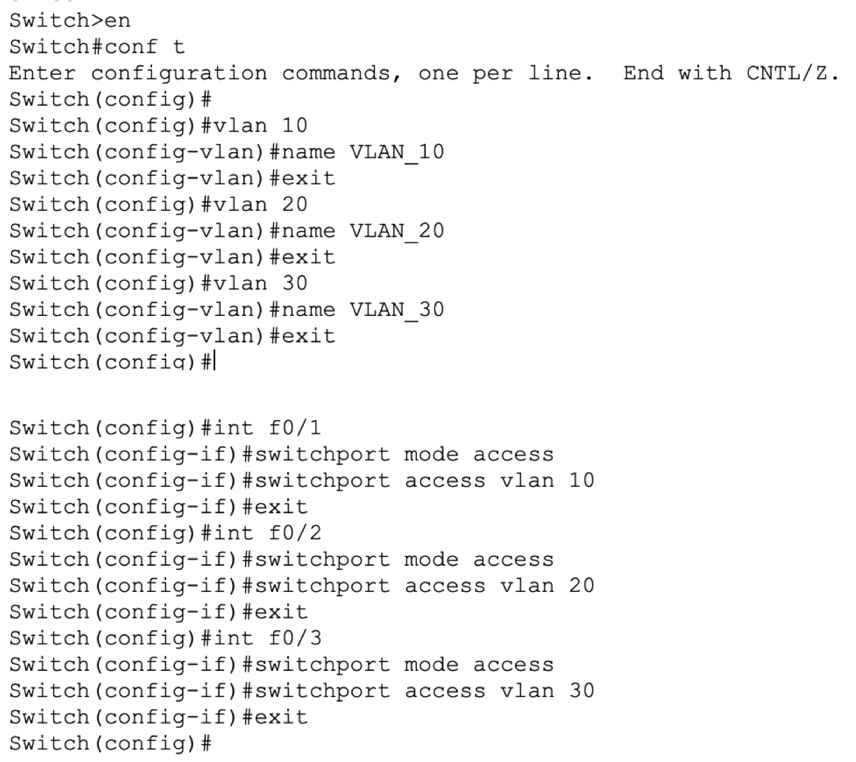 Switch(config-vlan)# name VLAN_10 : 이름 VLAN_10으로 설정