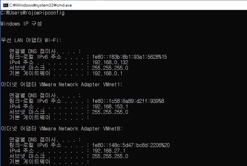 정상적으로 연결이 된다면 윈도우의 132번 ip를 확인할 수 있다.