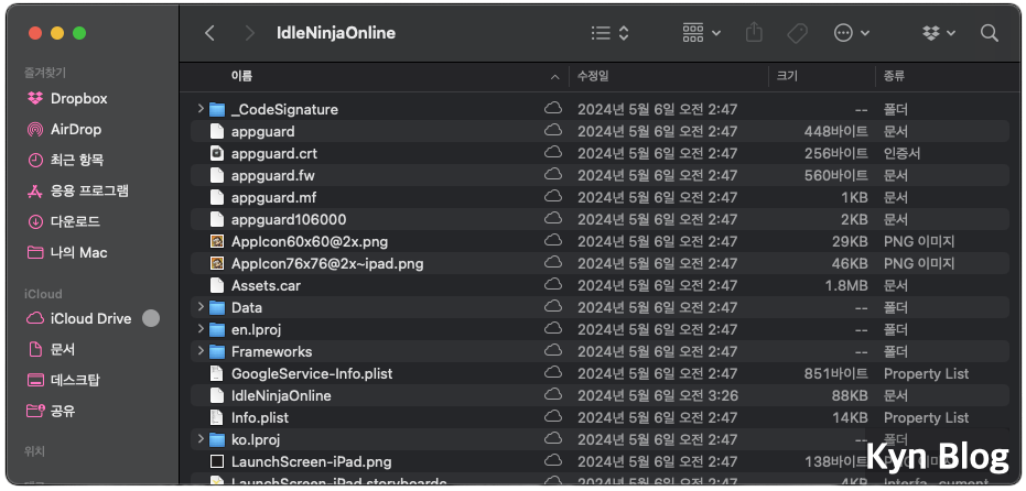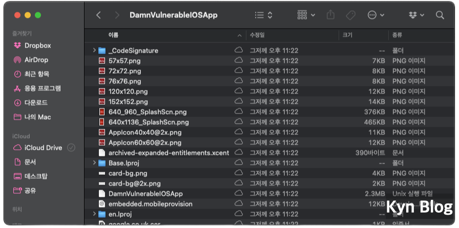 3. 추출한 IPA를 .zip로 확장자 변경한 후 내용 확인이 가능한 것을 확인