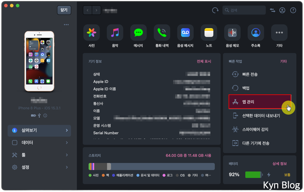 1. 기기를 iMazing에 연결한 후 우측에 위치한 앱 관리로 이동한다.
